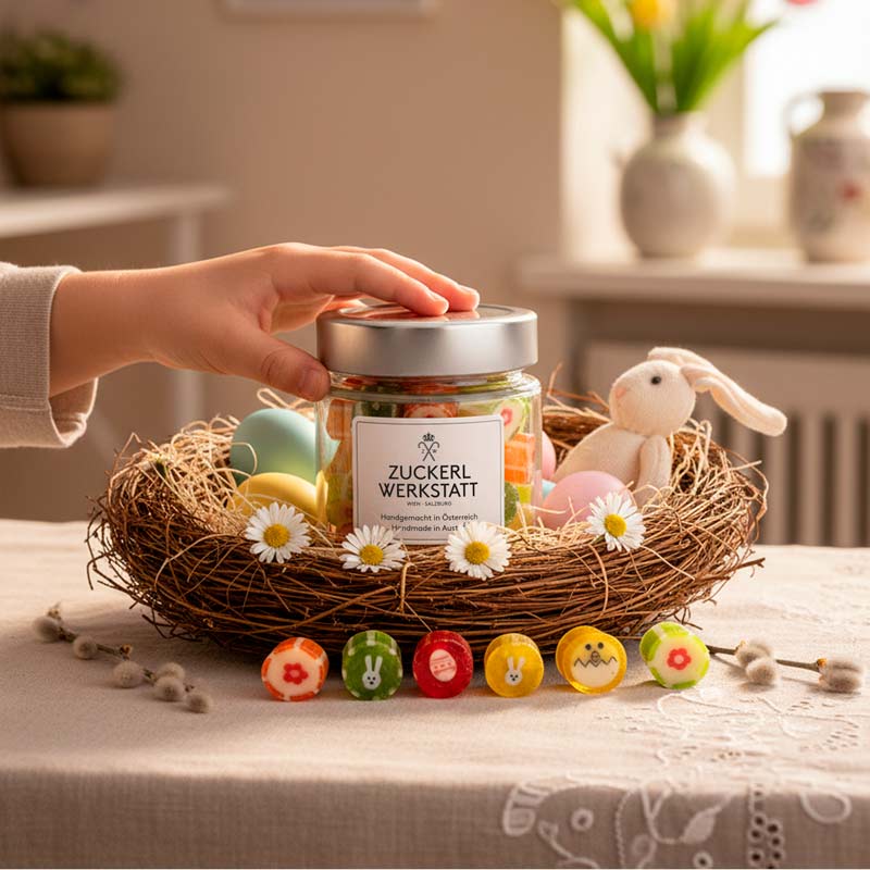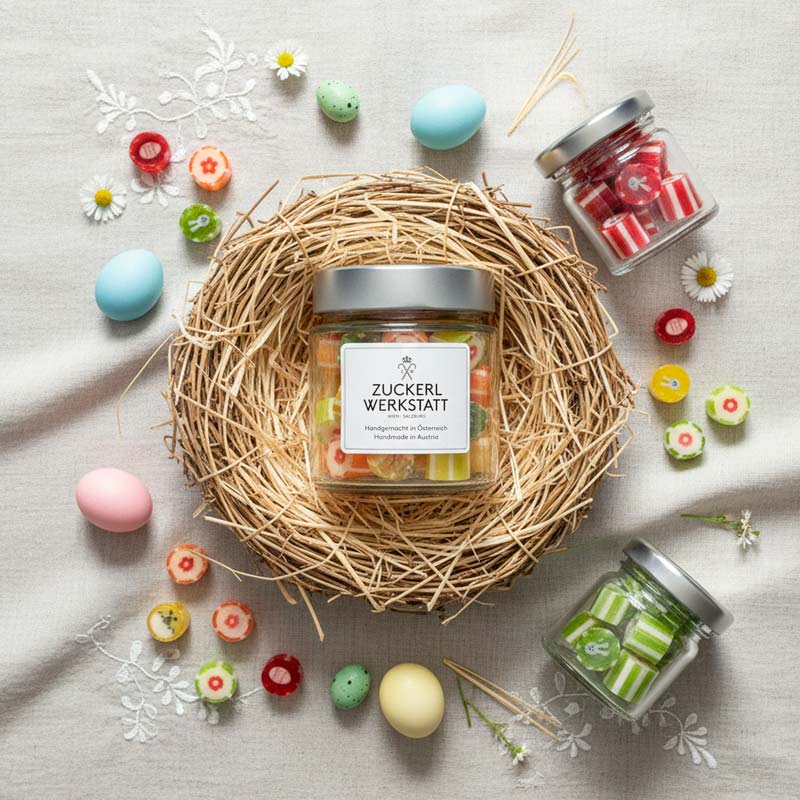Mit unseren handgemachten Zuckerl wird jedes Osternest zu einer Überraschung voller Genussmomente.